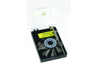 Эффект пескоструя. Для бормашин. При работе со щетками необходимо защищать глаза очками. Щетка Минимат наборная из стальной закаленной проволоки на пластиковом разборном диске на держателе 2,35 мм.