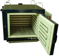 Печи с хорошей теплозащитой не только не успевают быстро остыть, но и имеют более толстый теплозащитный слой, что увеличивает их габариты и вес. Например, печь 50 л. с 200 миллиметровым защитным слоем не проходит в стандартный дверной проем и для переноски требует по крайней мере четыре человека.